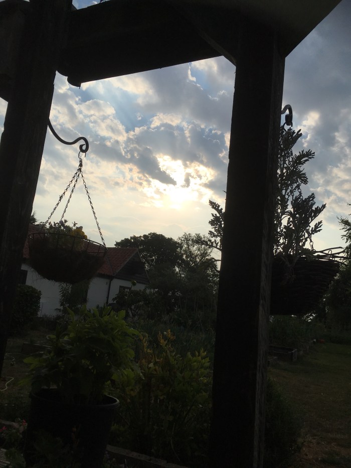 After an evening in London to celebrate the nuptials of a wonderful, young couple we returned to a cloudy night sky and the distant rumble of thunder. At 1 am a trickle of rain fell onto The Gables for two minutes and then stopped. I wanted to cry from disappointment. Maybe rain today?