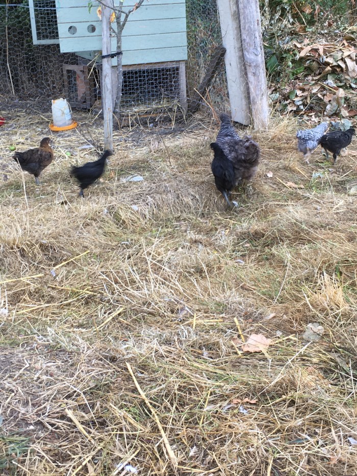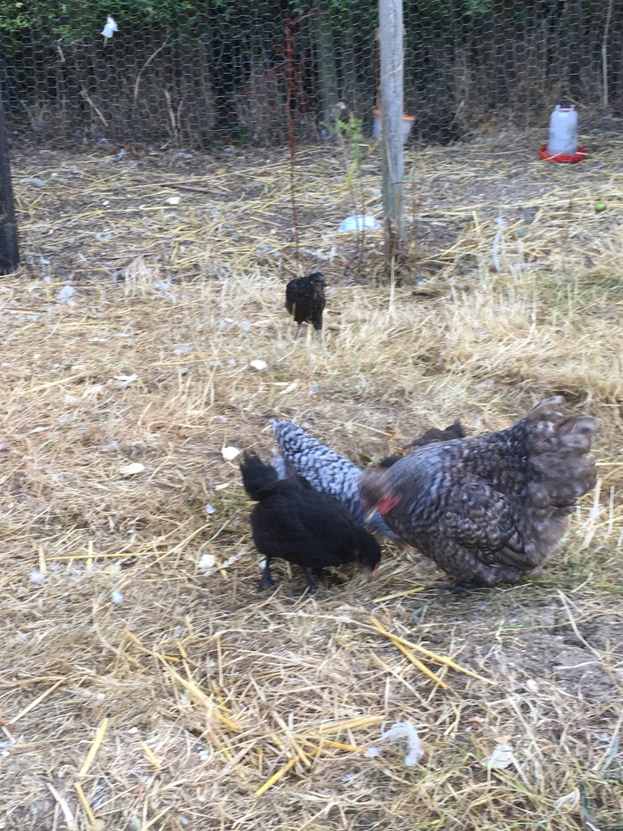 Some of the older chicks have been let out into the orchard, this morning, with their mother. They will be put back into their run and house this evening to keep them safe from Mr Fox