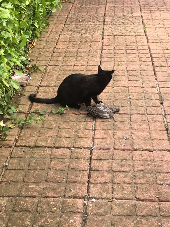 Second kill of the day and it’s not even 9 am. The first was a small bird eaten outside the back door and just now a pigeon. The cats were fed at 6.30 this morning so it’s not hunger, just the killer instinct. Hmmmm