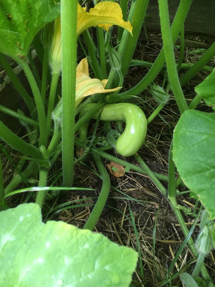 At first small, they quickly grow and can reach three foot long. We pick them at about a foot in length and cook them in dishes that recommend courgettes.