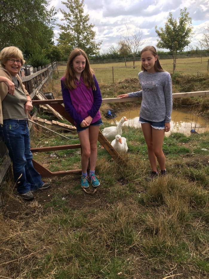 It was Heather who suggested that we put two goose eggs under two broody bantams just as her father used to do when Heather was a child. It seems that old country ways work best.