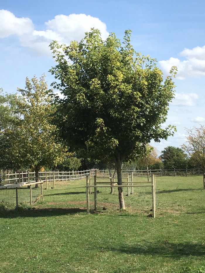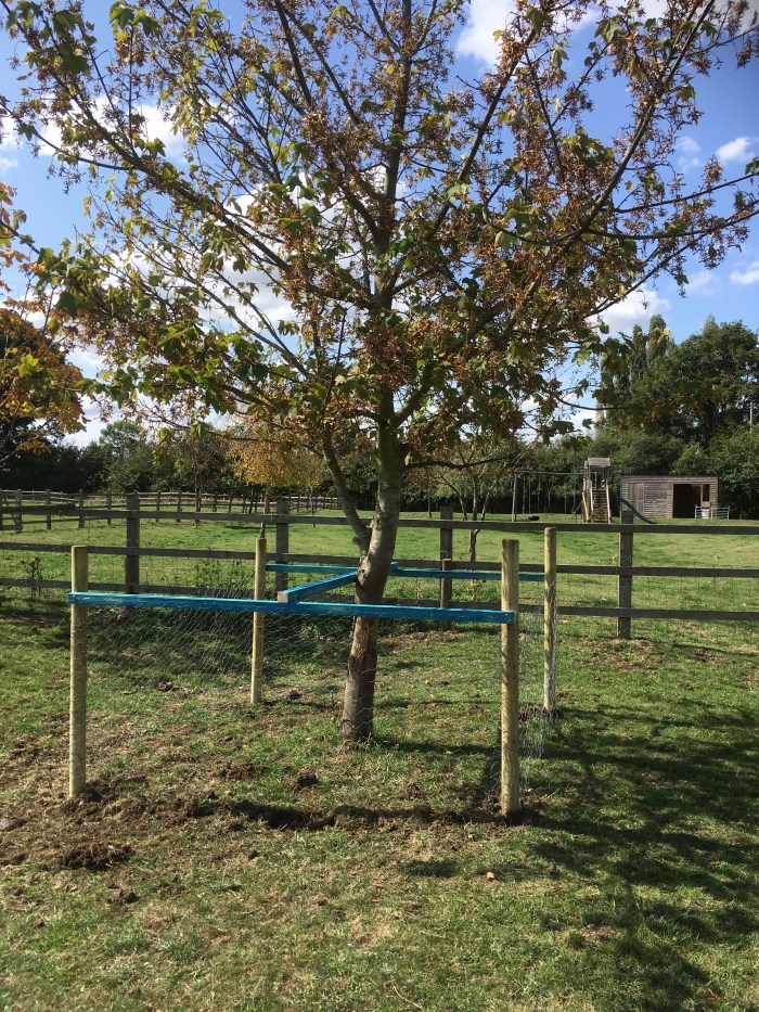 Cows and trees and sheep and trees are not a good combination. Lucy and Beattie regularly eat the bark from the trees in the field and the sheep rub up against the trunks and eventually the trees die. In an attempt to save the larger specimens we have put wooden stakes and netting around the trunks and maybe we can keep some of them alive.