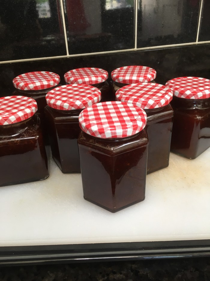 I stirred and potted up the last jars of plum jam this morning.