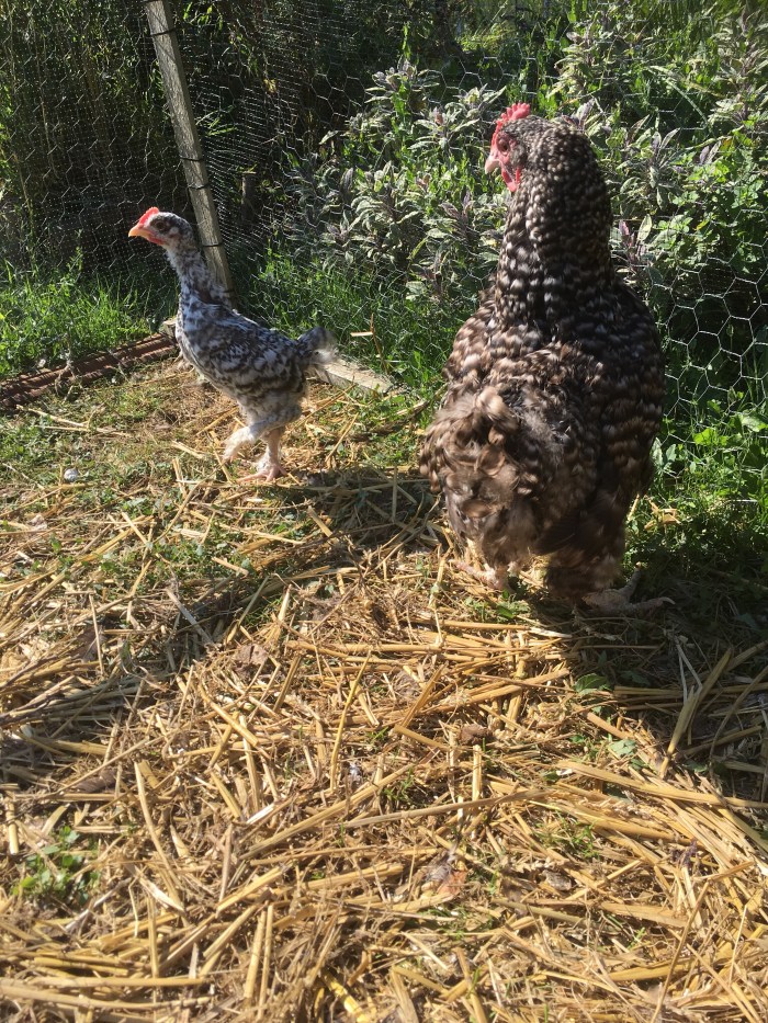 The Singleton chick is suddenly growing very fast. I think he is a cockerel but I hope I will be wrong. He definitely has feathery, bantam feet unlike his Maran mother.