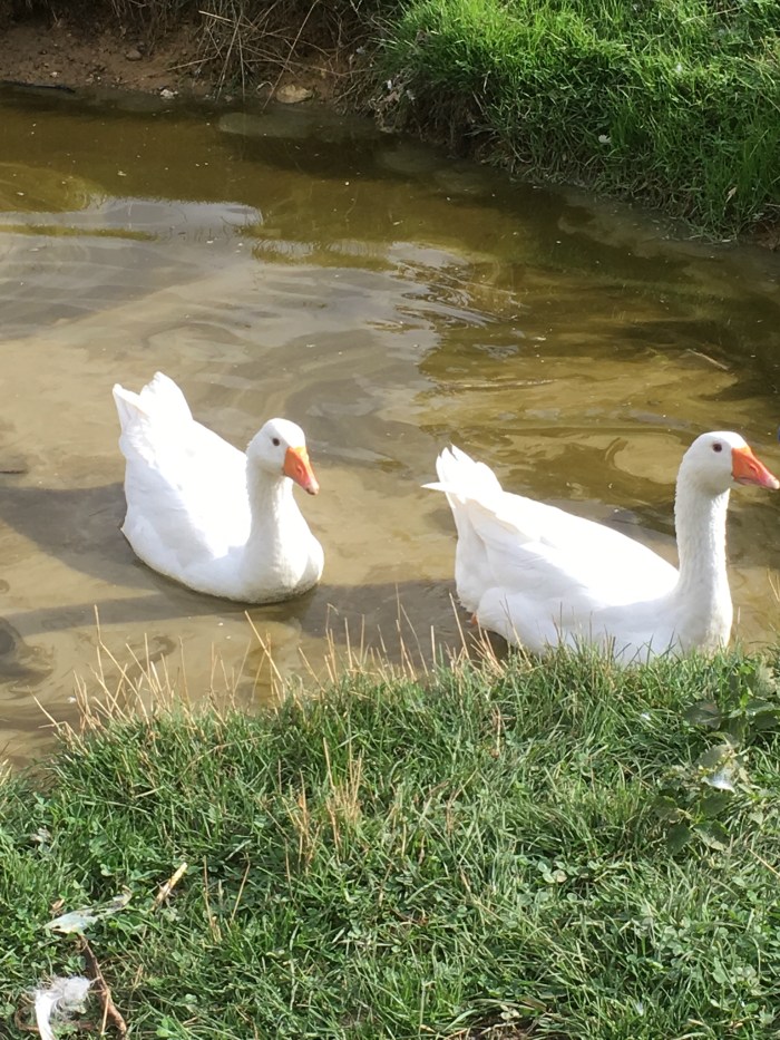 One more Maran hen is still sitting on some eggs. They are due to hatch in two weeks or less. Both goslings tried to bite my hand this morning and one was hissing which indicates that they are both ganders. We will have to wait until next year and hope that we can tell if they begin to lay eggs. If anyone knows an easier way to sex geese please let me know. Male or female, they are beautiful birds and they don’t frighten me …… yet.
