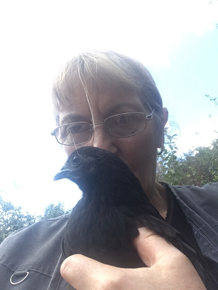 The slightly younger birds in the adjacent run are rather timid but very pretty. I often catch the smallest and give her a cuddle and stroke her silky feathers. I’m not sure if she likes this but I do!