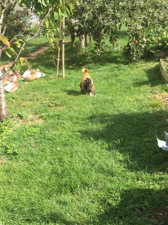 All the adolescent birds are feeding well but not yet laying. One of them (the biggest) is definitely a cockerel who may not be here for too much longer.