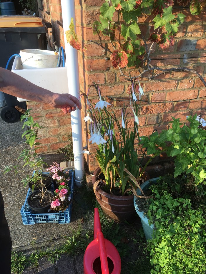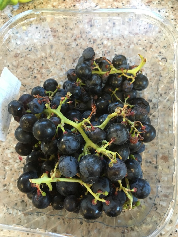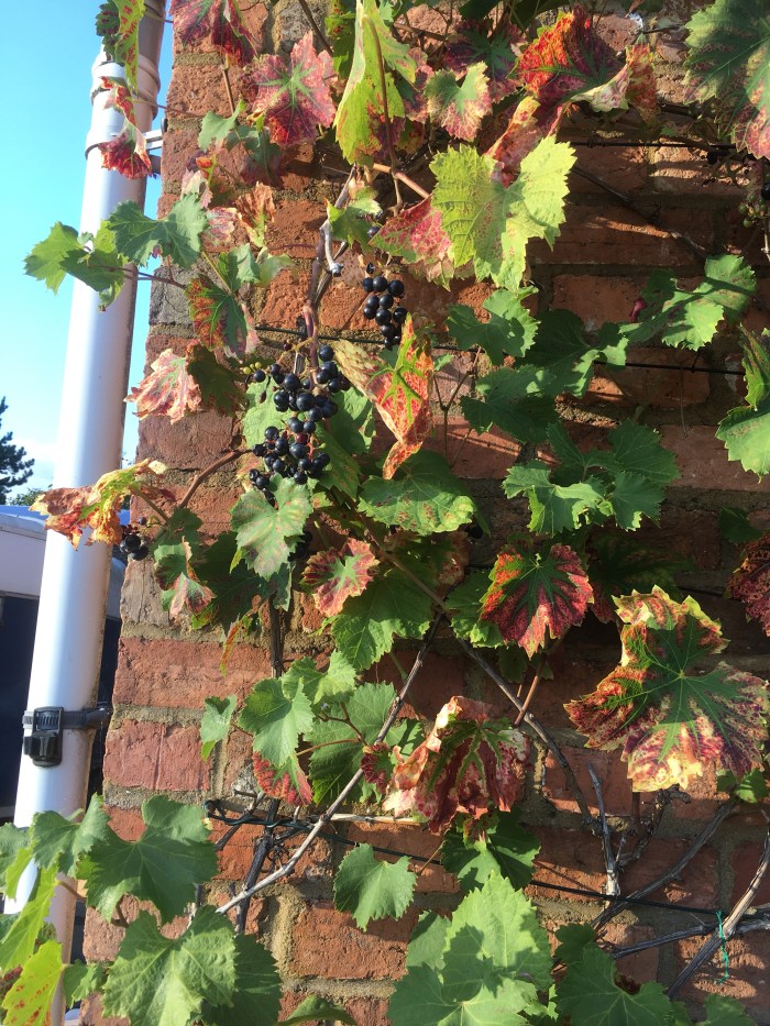 There is also a prolific vine on the wall and it produces small, but delicious, grapes.