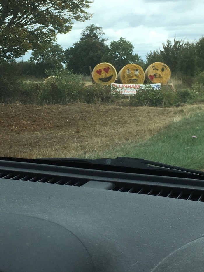The Blunham Young Farmers are advertising an event using decorated bales of hay.