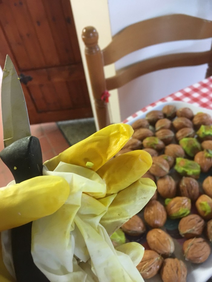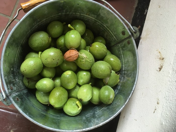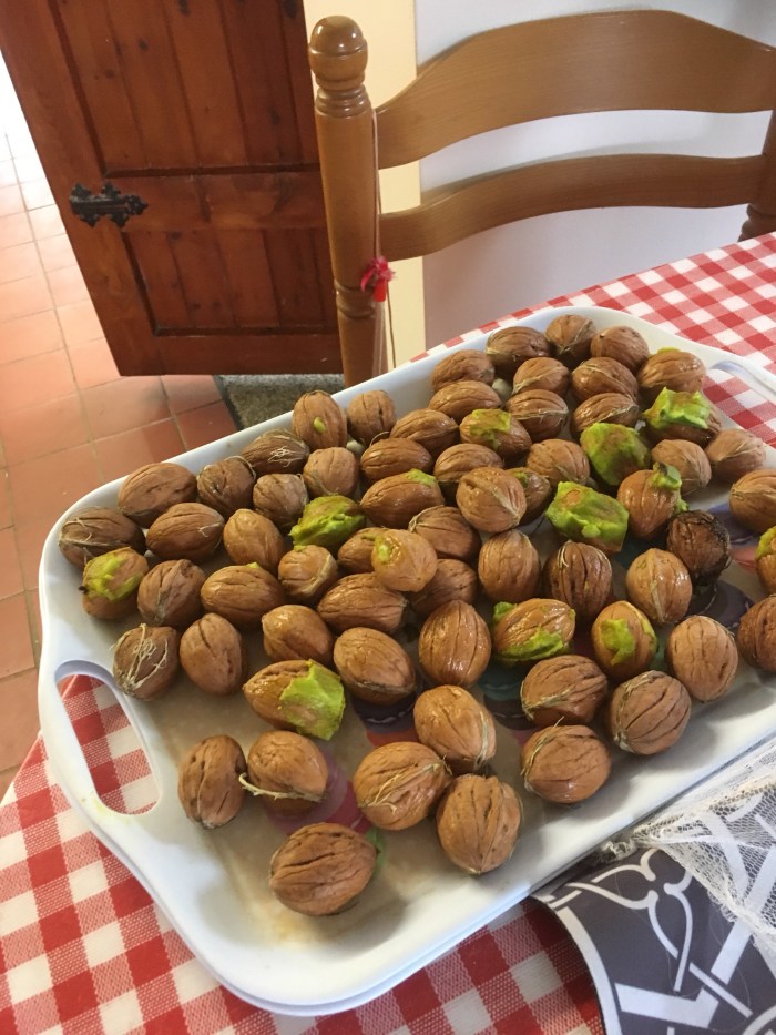 I used a knife to split the hulls, but only half of them would part easily to reveal the inner, brown walnut shell. The rest I had to discard.