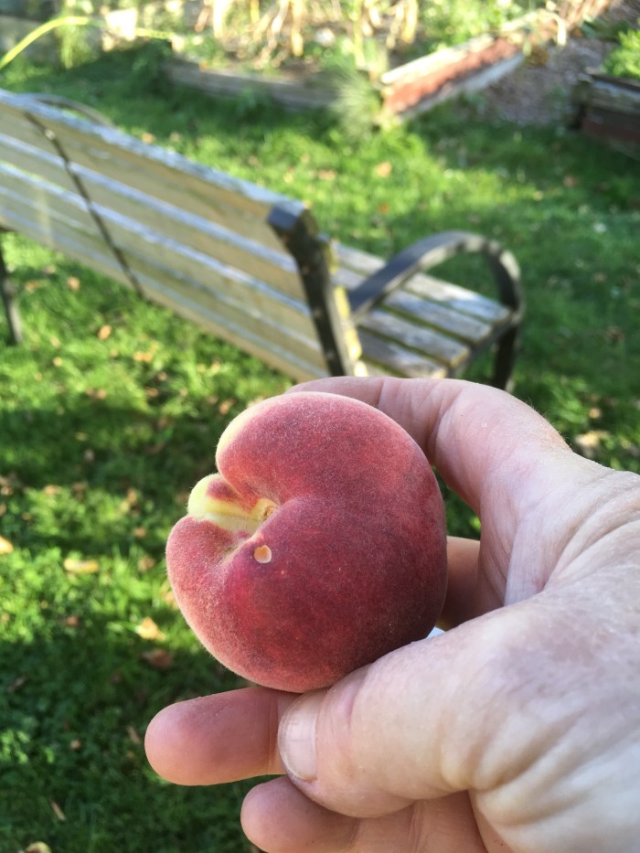 September 27, 2018 by gfreedman2013 It’s a peach. The first, maybe more next year. Share this: Share on X (Opens in new window) X Share on Facebook (Opens in new window) Facebook Like Loading... Related