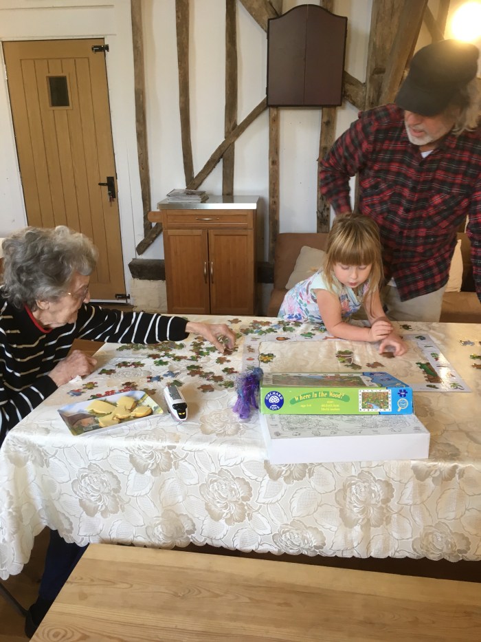 Then it was back into the car and onto the motorway, arriving at Tge Gables to see son and grandchildren. Mum, granddaughter and Grandpa are now in the barn working on a puzzle.