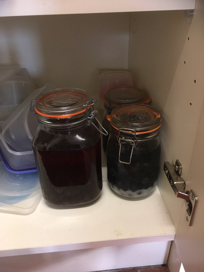 Keep on shaking them every day until the sugar dissolves and then give them a shake whenever you remember. Keep hidden until December or the new year.