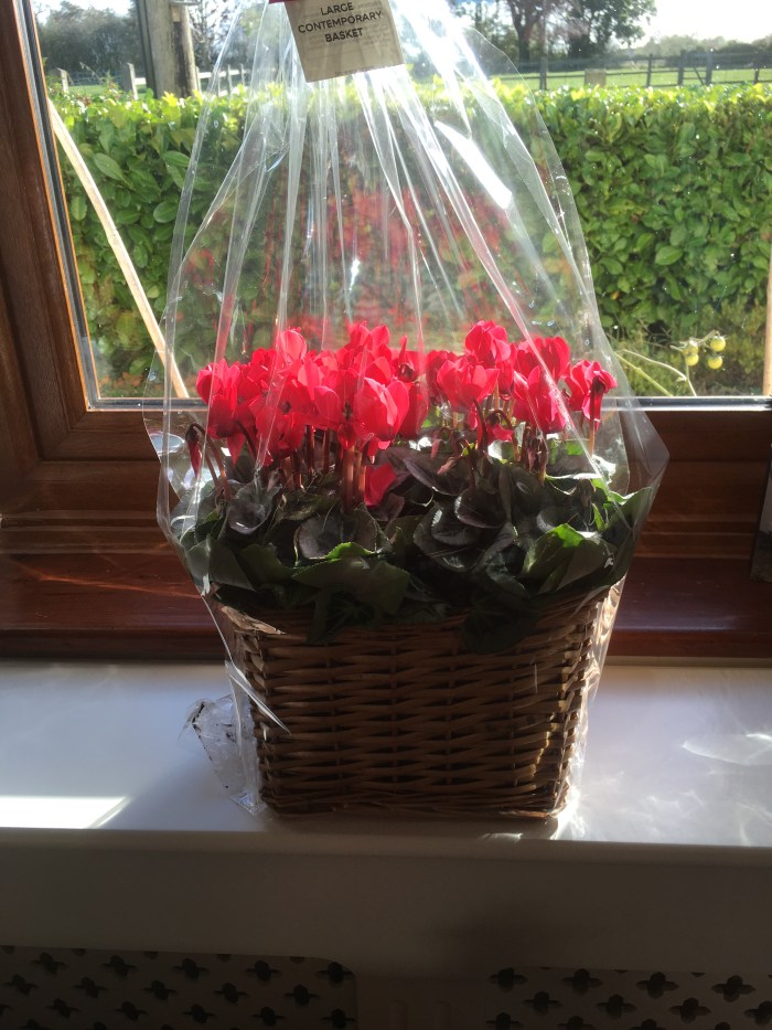 We had a lovely natter and ate too much! I made them walk around the place before I fed them and they disobeyed orders and bought me a beautiful basket of cyclamens.