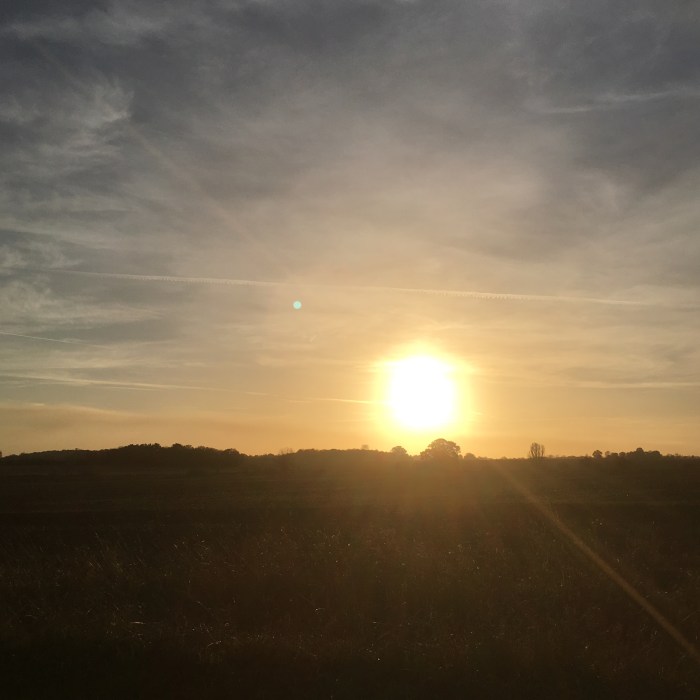 October 24, 2018 by gfreedman2013 Afternoon trip to London to see mum and home again as the sun began to set over the fields Share this: Share on X (Opens in new window) X Share on Facebook (Opens in new window) Facebook Like Loading... Related