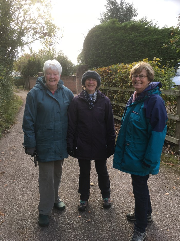 As we walked through the village we met one of our number who had recently hurt her leg. She is able to garden again but not quite ready for the Wednesday walk. (It’s the woman with the wonderful white hair holding a girl and trowel in her hand.)