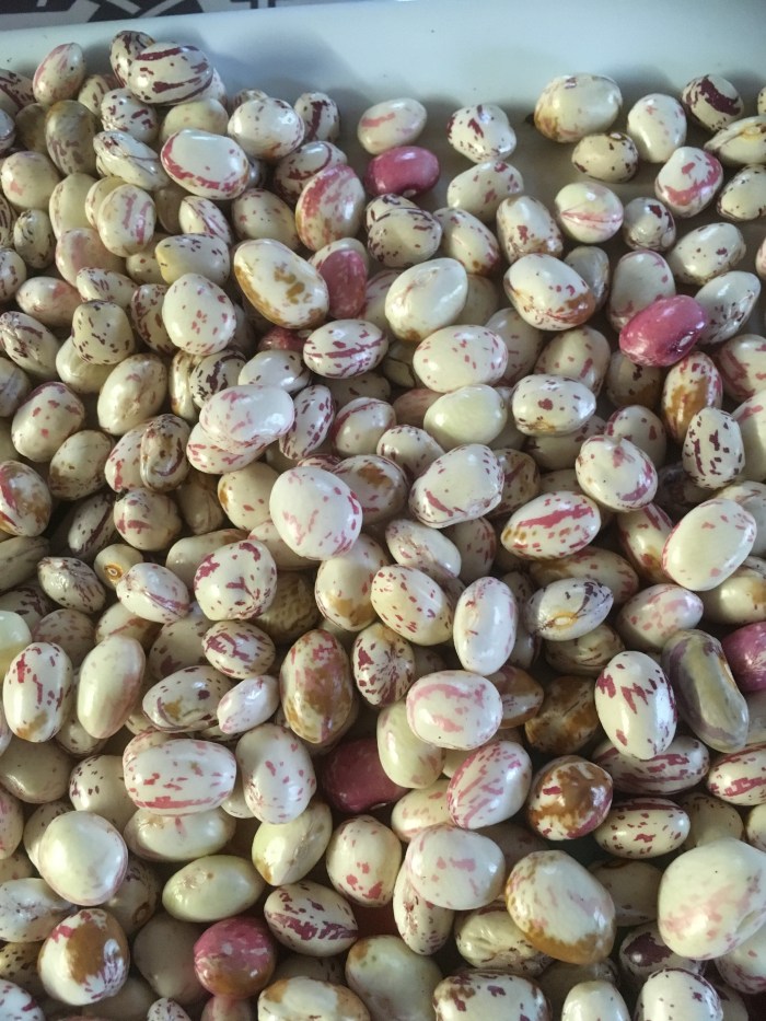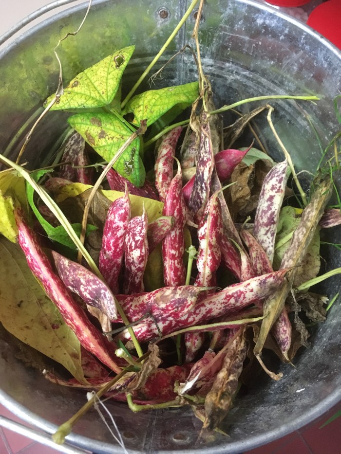 We just harvested the Borlotti beans, podded them and now they will go into the airing cupboard to dry them off before storing in jars.