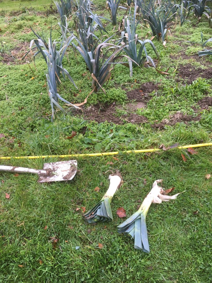 A good day for cooking biscuits and quiches and a leek bake…..after digging up some leeks from a muddy vegetable patch this morning.