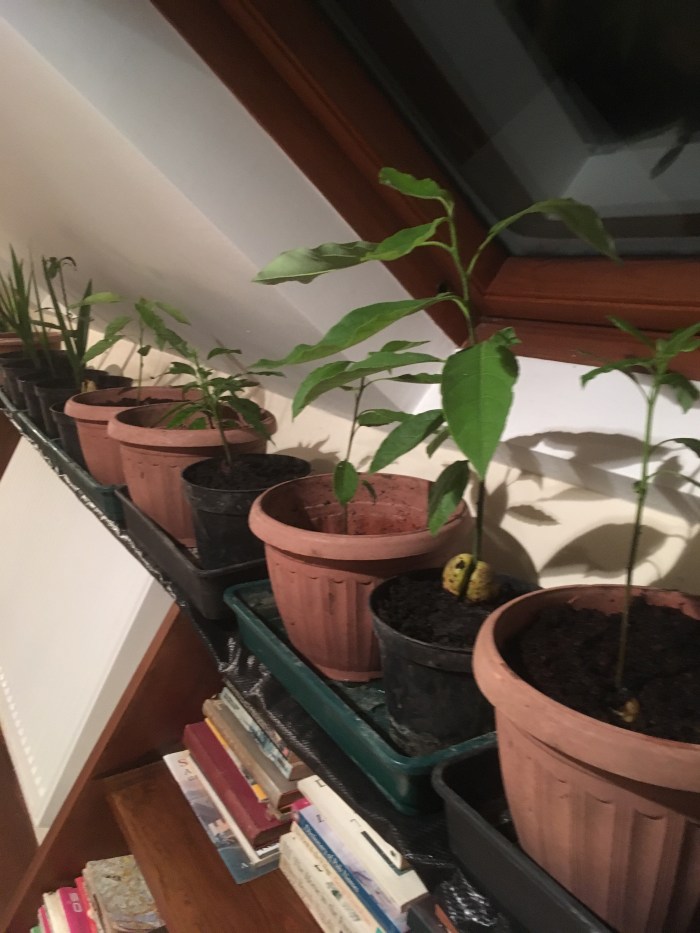 Poly tunnels get cold at night during the winter months so the more sensitive plants are spending the winter indoors. The avocados, the lemons, etrogim and the dates – all have taken over the corridor upstairs in the house – and they need regular watering too.