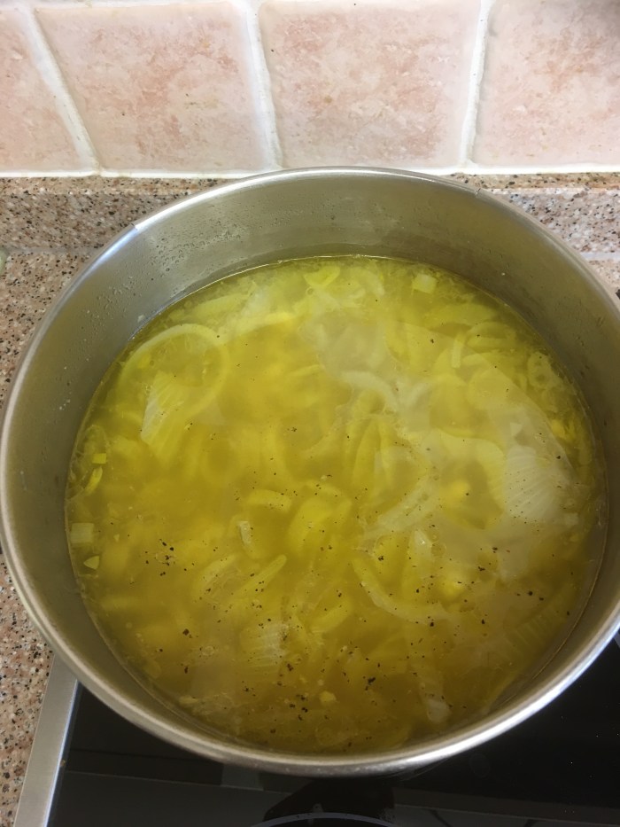 Grandson has been staying with us for a few days and his favourite soup is Onion Soup served with grated cheese and croutons. We have a great many onions and garlics and this is an easy and tasty way of using some of them. We will share this pot with friends who are joining us for lunch later.