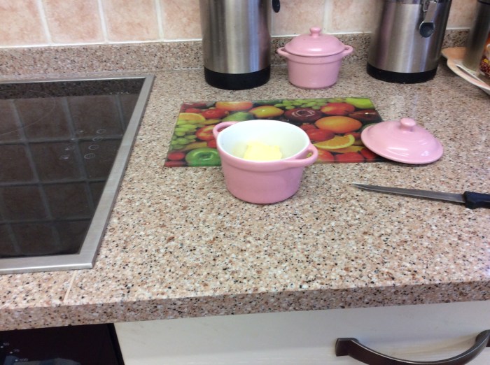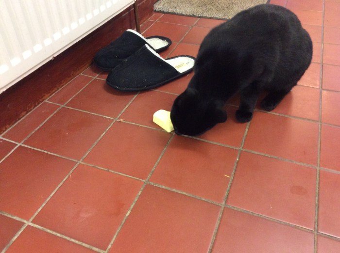 It was, in fact, a slab of butter. He had jumped onto the counter and opened the China butter dish and stolen its contents. Oh Nigel, when will you ever learn?