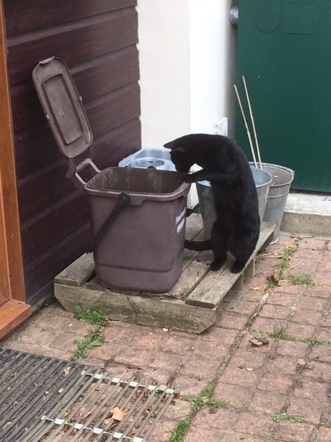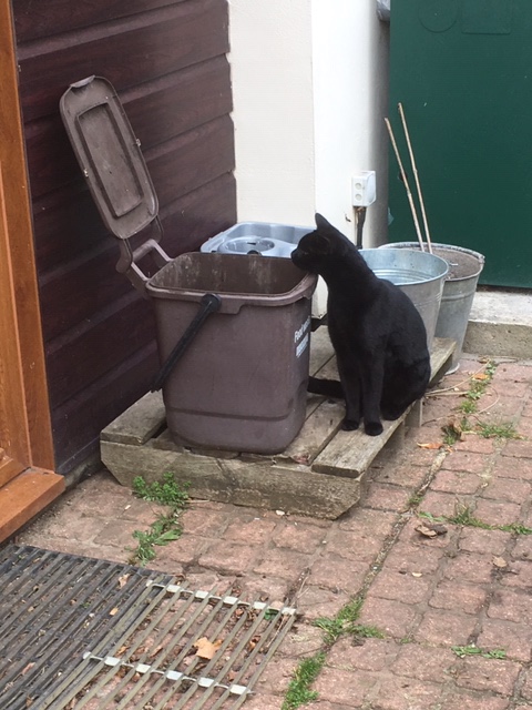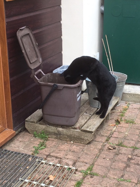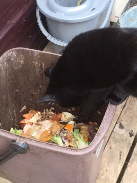 Can’t be trusted where any food is available. Last week it was half a bag of Hovis lifted from the bread board and today he managed to open the compost bin. And yes, we do feed him!