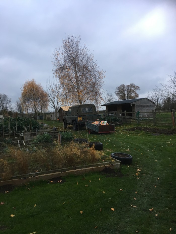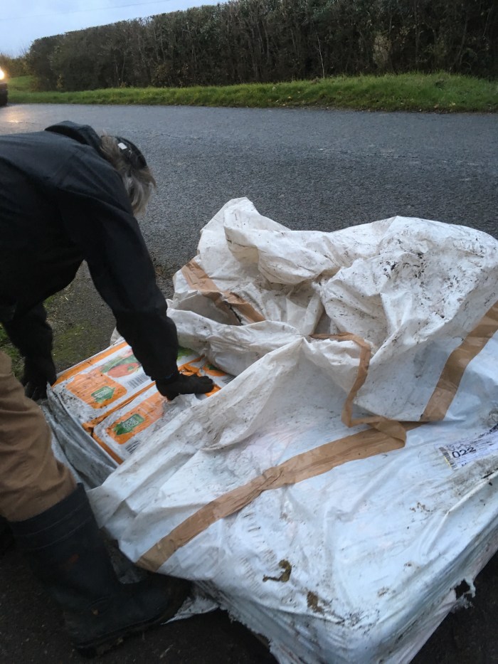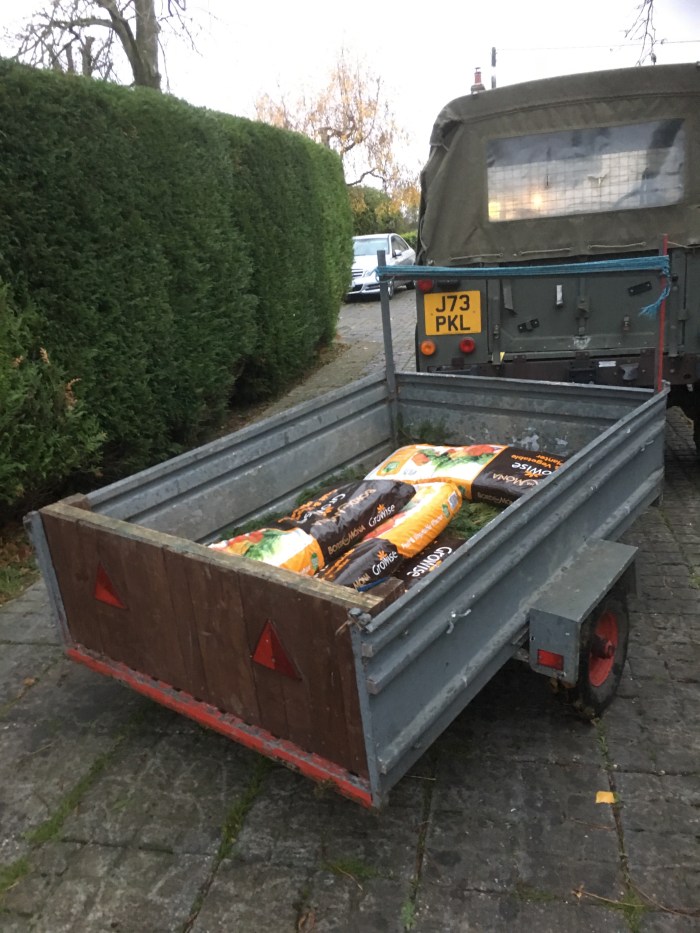 It was into the house, off with the glad rags and back into works clothes and wellies so that I could help Jeremy load the bags onto the trailer and take them down to the new polytunnel.
