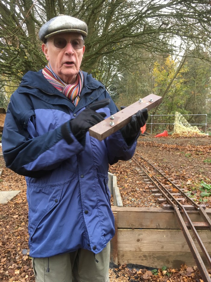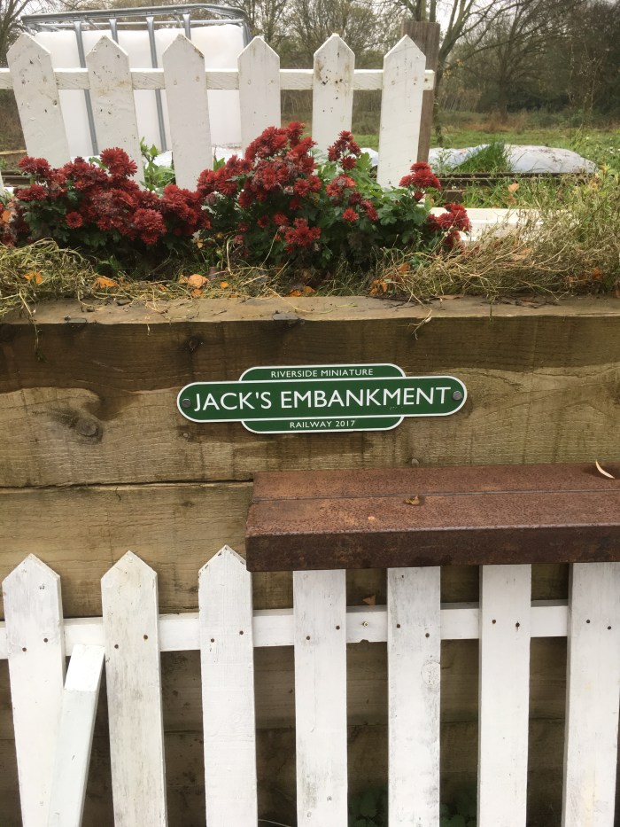 These sleepers are made from recycled plastic and prepared by local people who are employed in a sheltered workshop. The plaque below is to thank one young lad who shovelled most of the earth for the embankment.