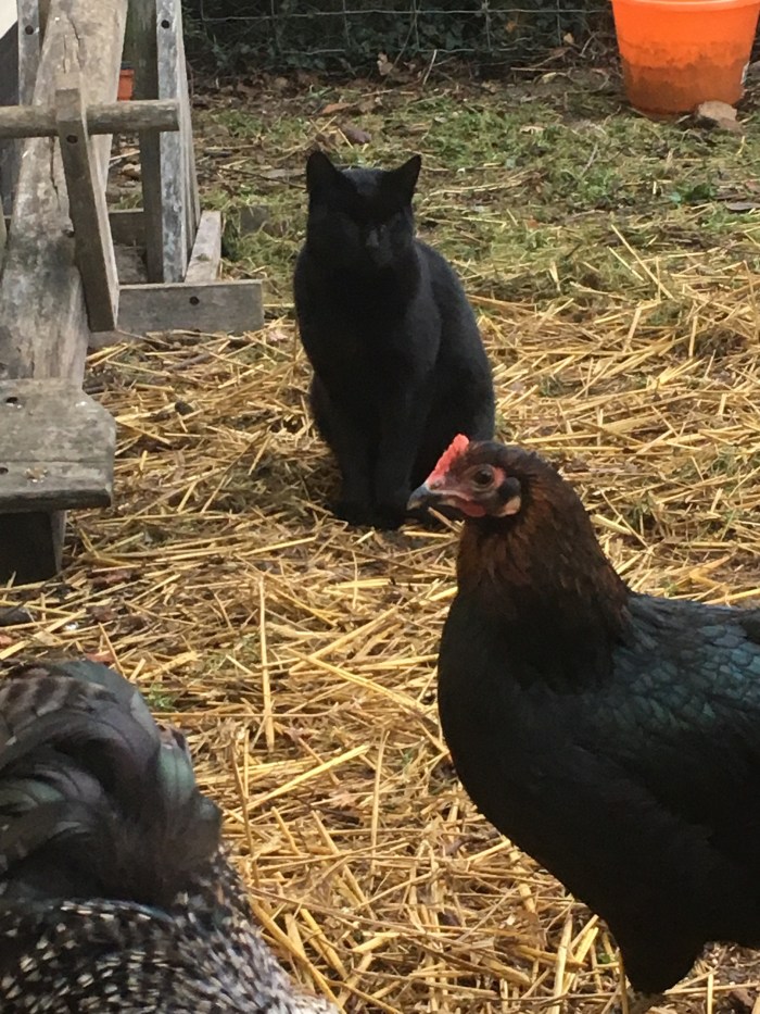 The strange thing is that he never (or rarely) tries to chase the birds, even the chicks. Yet out around the rest of the land he is more than happy to chase wild birds, catch them and eat them and even manages to get pigeons. How does he know that the domesticated birds are not for chasing?