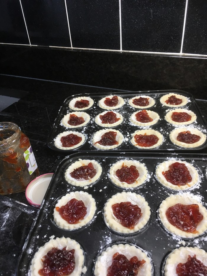 Yesterday I bought Doves Farm gluten free flour and followed (and tweaked) an internet recipe for making gluten free jam tarts. Rolling out the pastry is none too easy but they seem to have turned out quite well.