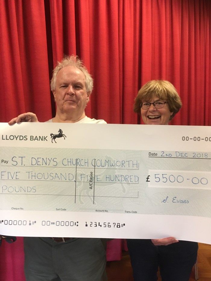 What started as a germ of an idea three years ago (big up Steve and Paul) has just finished its third year, when on the first Sunday of each month between Spring and autumn, enthusiasts gather to admire cars and bikes, have a light breakfast and raise money for the upkeep of St Denys Church. This morning the committee handed over a cheque for £5500 to the church wardens. A good time was had by all.