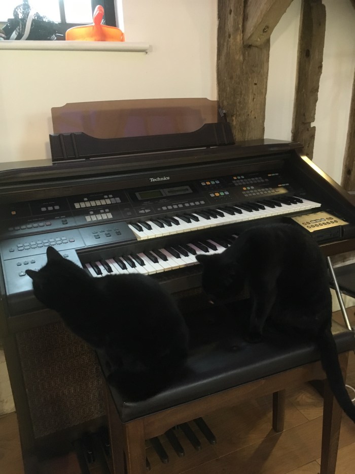 Listening to Sinatra classics as we lay the tables and trying to get the cats to practice a duet on the electric piano organ.