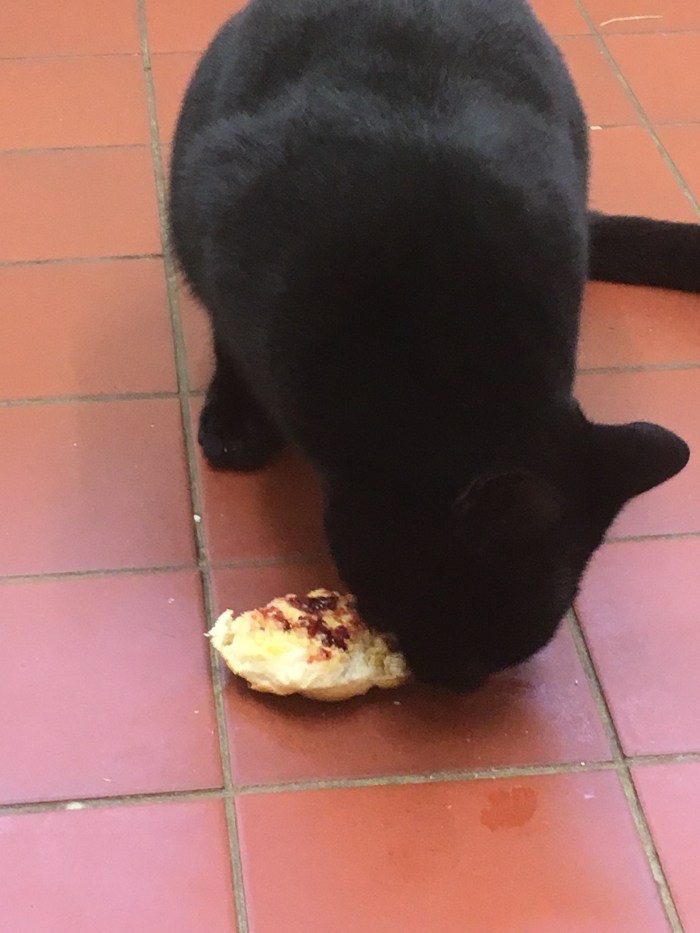 And Nigel opened the lid and ate the remains of Mum’s breakfast bagel with butter and black currant jam. (I was the culprit who didn’t lock the bin).
