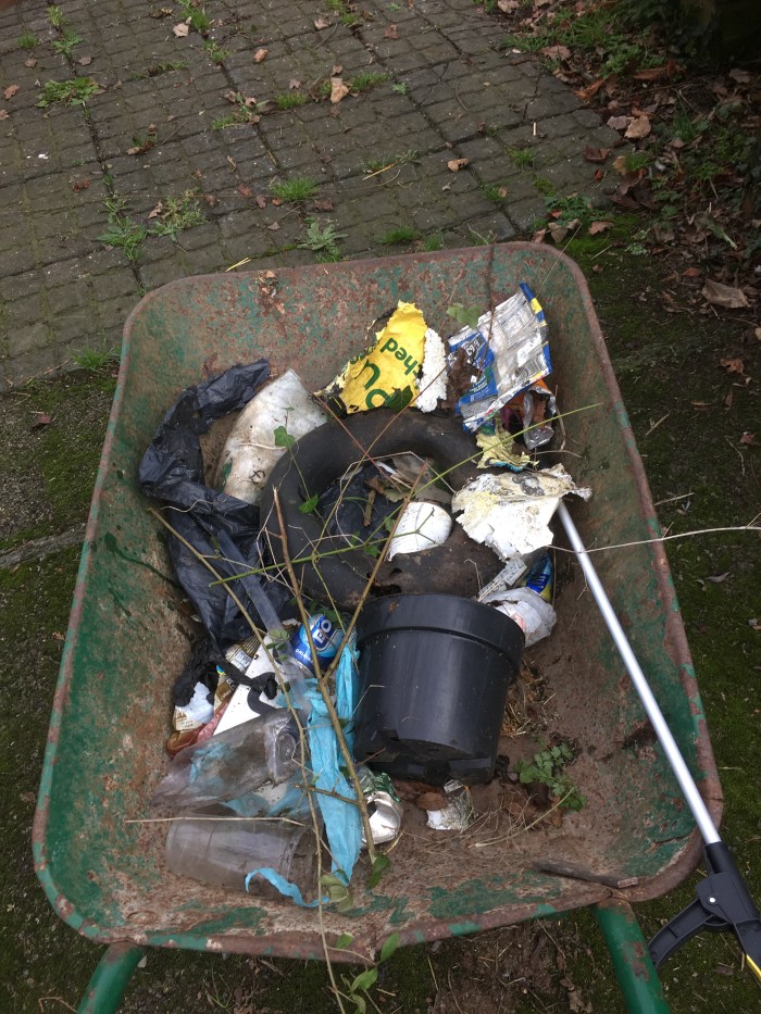 Passing motorists and passengers have a nasty habit of throwing rubbish from their moving cars into the ditches along our country roads. Villages organise “litter pick” days from time to time. I decided to clear my patch this lunchtime.