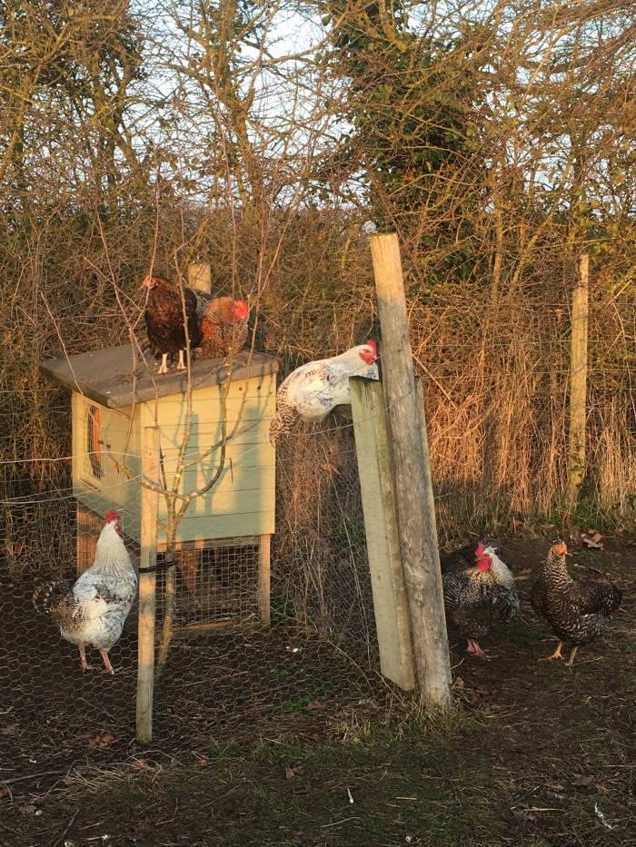 The cold and icy morning became a rosy and mild afternoon and the birds were sunning themselves when I went to inspect the new apple tree.