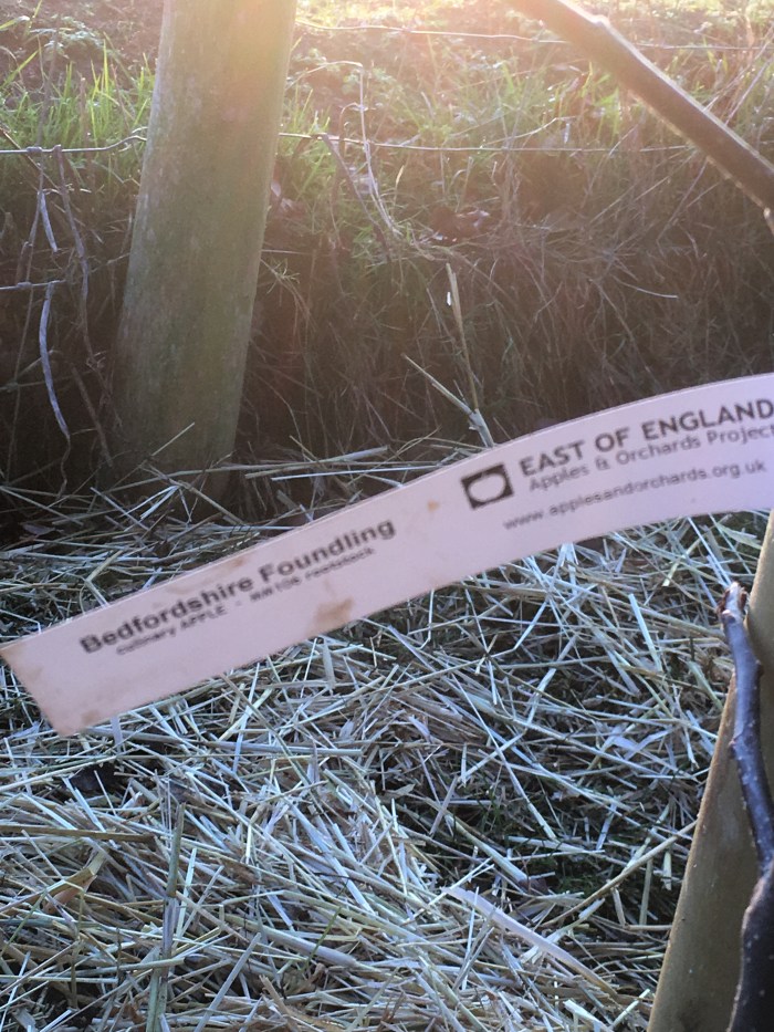 While I was out shopping and selecting books from St Neots library, Jeremy planted one of three trees that were delivered today. This one has the intriguing name