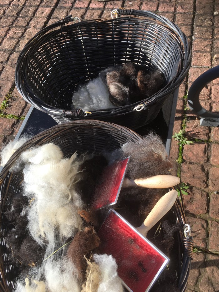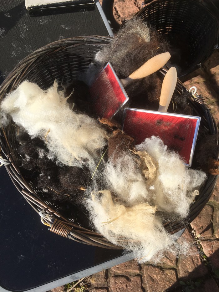 Inside the parcel was a pair of carders which I am already using to comb the Jacob fleece that was shorn last week.