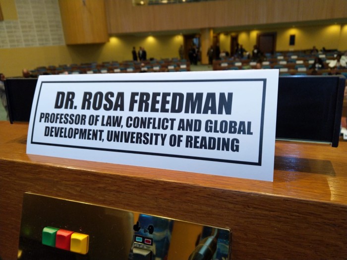 Has just arrived at the UN compound in Adis ababa to speak at a conference on sexual exploitation and peacekeeping. She is sitting on the podium.