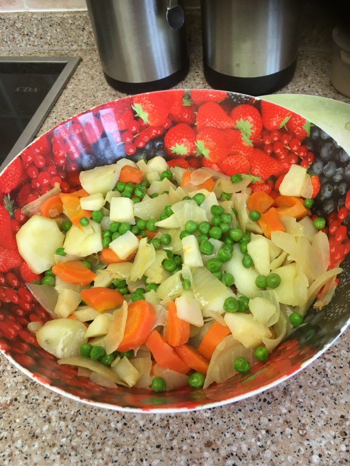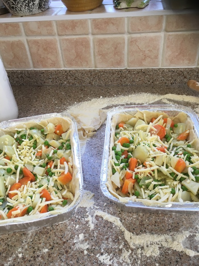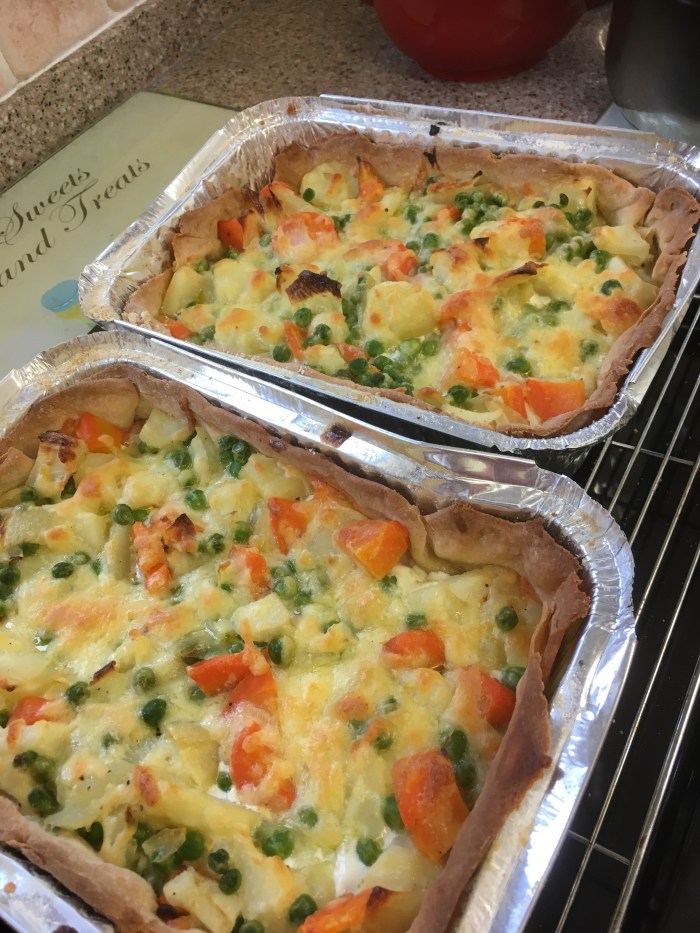 Our dear friend and excellent cook, Joy, used to make us her version of Homity pie when we lived in London. She spotted a recipe that she thought I would like, using root vegetables from our garden. I added some frozen peas for colour.