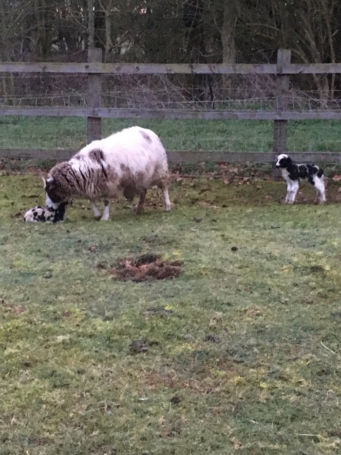 Another set of twins born during the early hours (I saw her at midnight when she had separated herself from the flock) and Jeremy went out with a torch at 4 am and saw twin lambs beside her.