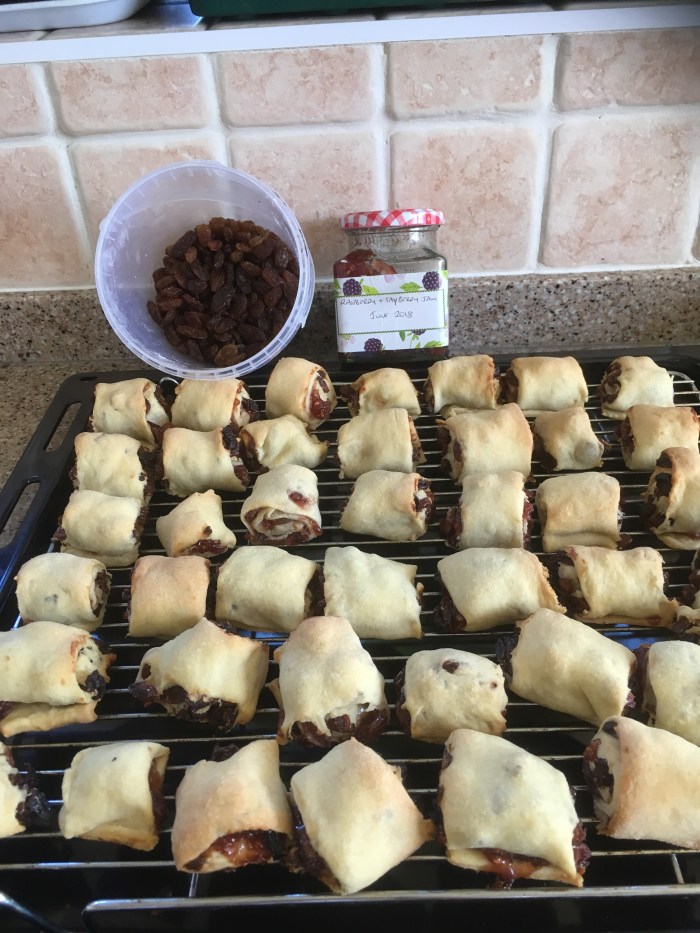 One thought on “Strudel biscuits – using some raspberry and Tay berry jam (made last July).