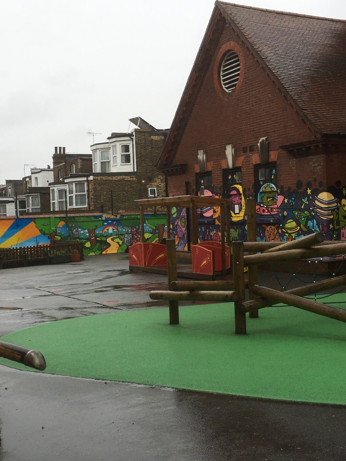 As a surprise I went with son to collect granddaughter from her school. It’s a Victorian, red brick building reminiscent of my own primary school. But this school has a bright, painted playground instead of our grey, gravel at my old establishment.