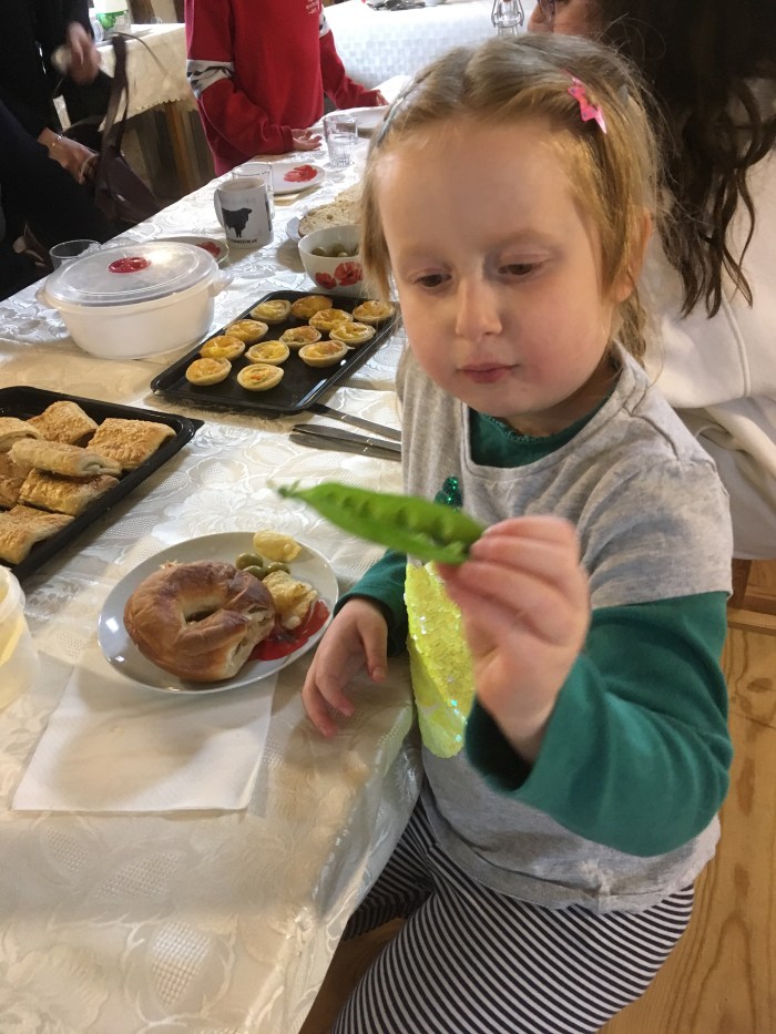 The visitors took home rhubarb and beetroots and eggs but only granddaughter got the first peas