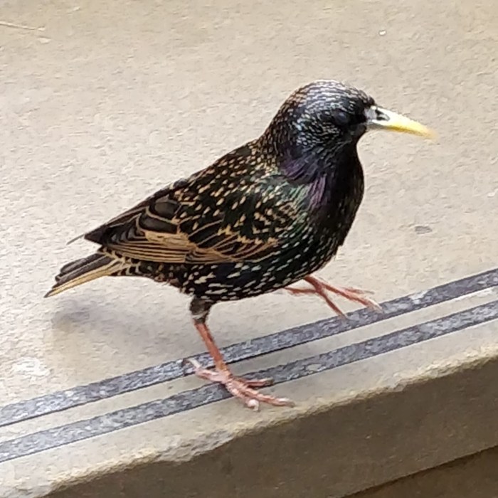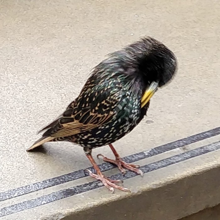 They made the acquaintance and shared their lunch with an urban starling (a bird I hardly ever see at The Gables).