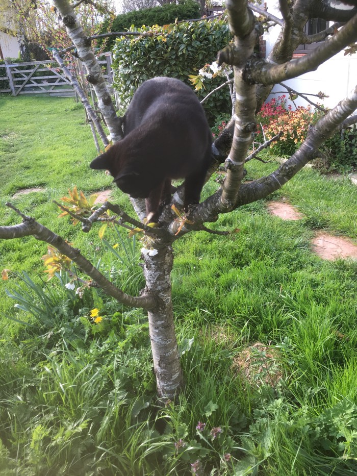 April 9, 2019 by gfreedman2013 Climbing cat in a cherry tree. Share this: Share on X (Opens in new window) X Share on Facebook (Opens in new window) Facebook Like Loading... Related