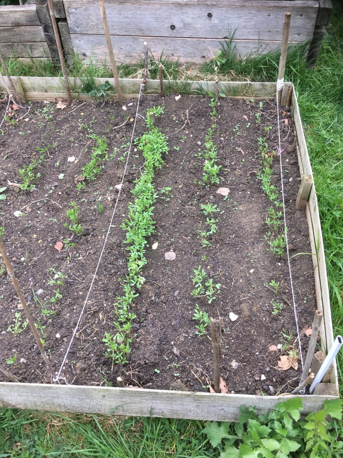 One day, during the winter, when I was making lentil dhal, I asked Jeremy if we could grow lentils in our garden. He was doubtful but the very next week a letter arrived with his Garden Organics magazine asking for volunteers to take part in an experiment to grow lentils in organic gardens. We signed up straight away and received a package with two types of lentils and some paperwork detailing the plot required, measurements of rows and paperwork on which to record our planting dates and yields. The first lentils were sown in the middle of May and the second batch are due to be sown on Thursday. The first rows are showing but will they flower and yield lentils? The experiment continues.
