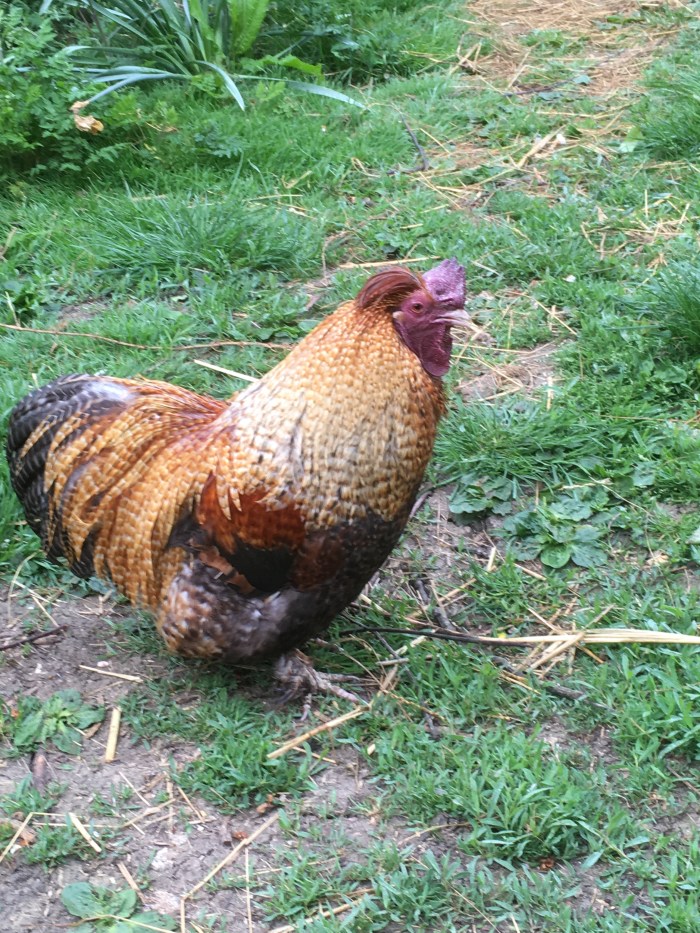 Our beautiful Bantie cockerel has never fully recovered from the bloody fight he had some weeks ago with the young cockerel in the orchard. His once proud comb now flops to one side