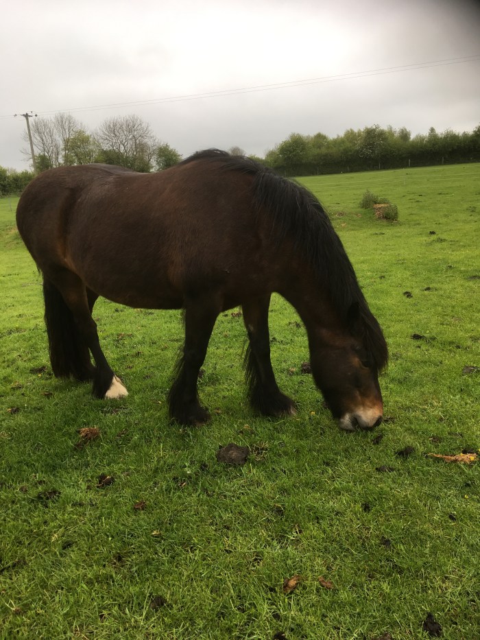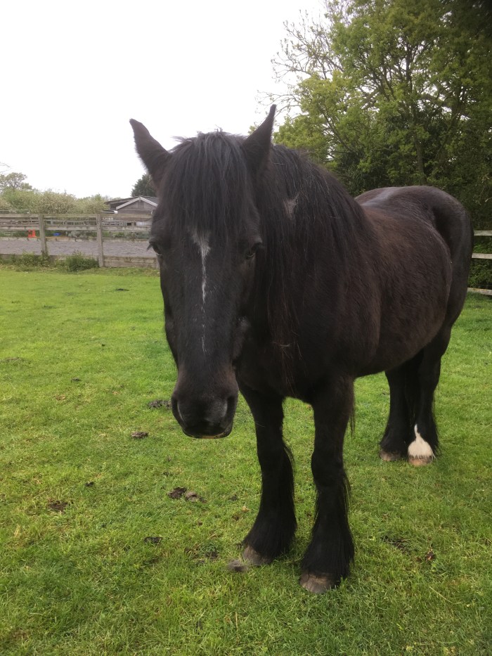 Here’s why. Horses usually live long lives, very long lives. I just visited friend Kate to see her cows and their pretty calves. Then we walked across the field to talk to her two beautiful Dales Ponies. Minnie, aged 29