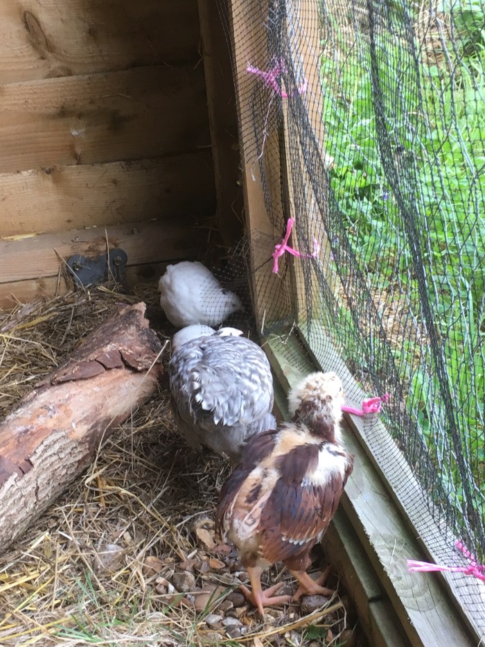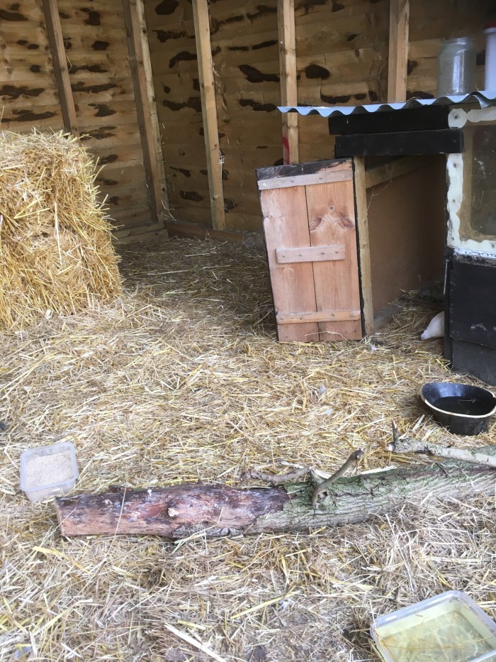 Quails cannot be kept outdoors as they run away – and they run fast and don’t come back. Rabbit hutches are suggested as housing but I hate the idea of caged birds so we turned half of the large hay barn into a playground for birds replete with straw bales and logs and twigs and feeders. At night, for warmth and safety, they have a chicken house that can be locked. The quail will stay inside their gilded cage even as adults but the three chicks may join the other flocks when they are fully grown.
