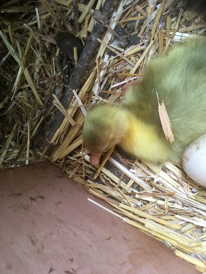 Mother hen is protecting you, little gosling, and keeping you warm under her feathers. I just lifted her up for a second to take a peek.